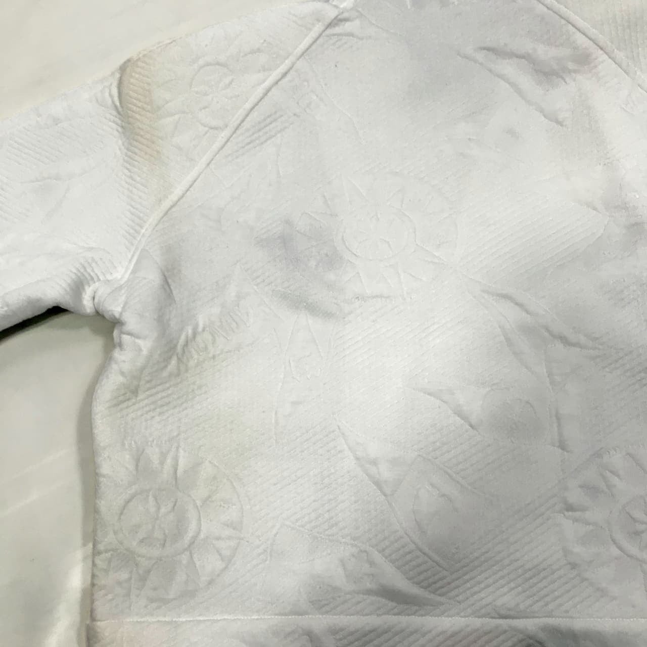 ・前身頃の正面部分や後ろ身頃の左側など、広範囲に変色があります。