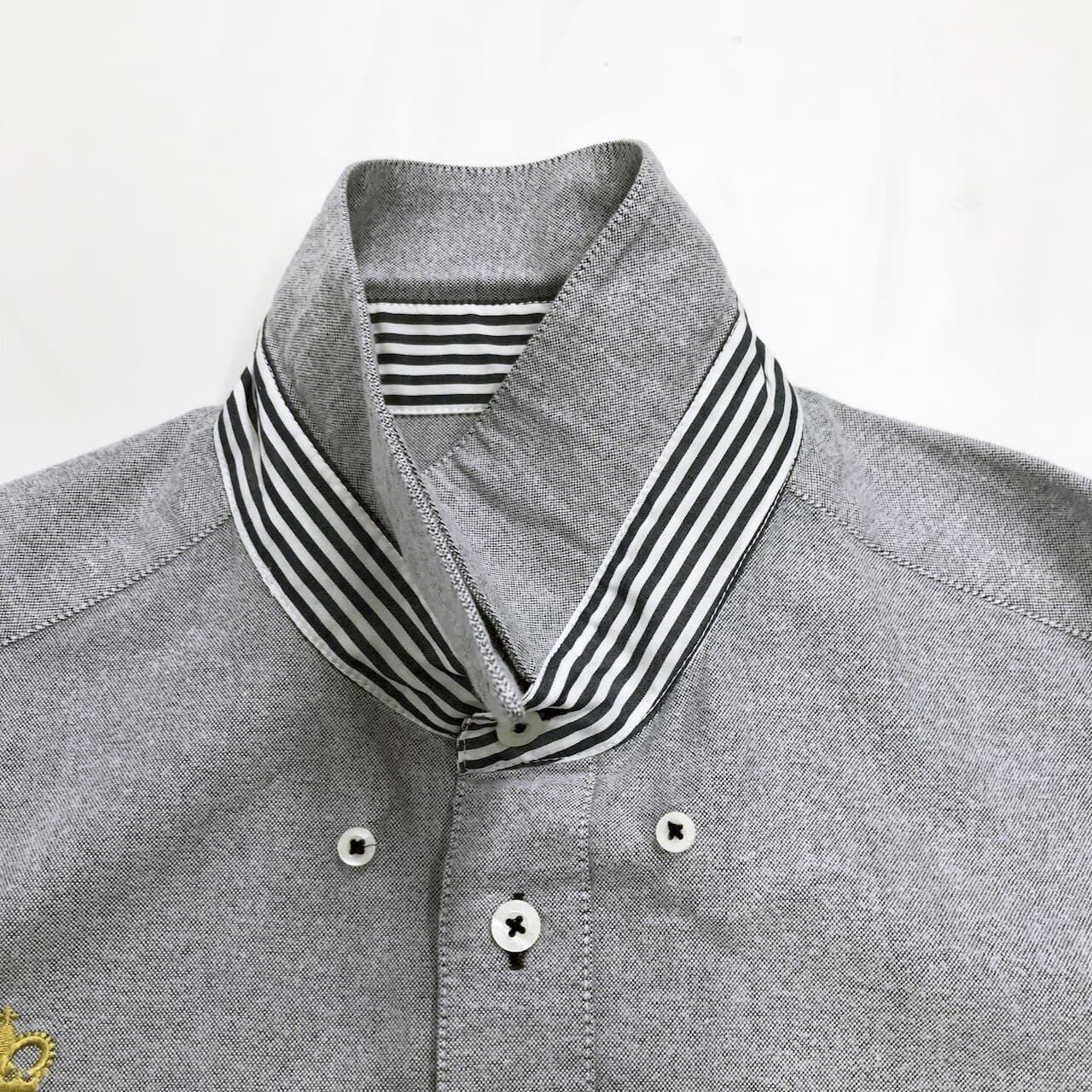 衿裏と台衿部分、カフス裏にボーダーの生地がアクセントとなっています。