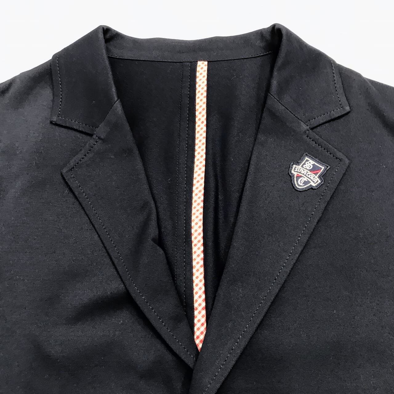 衿にあしらわれたワッペンが印象的な、2012年春夏モデルのジャケットです。