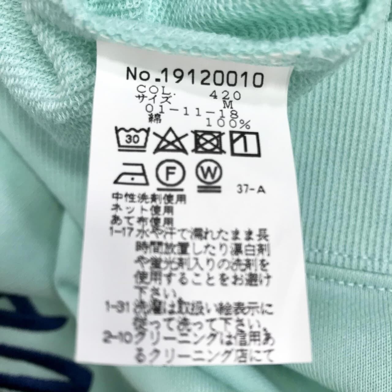 【中古品】ハーフZIPプルオーバー ミントグリーン 19120010